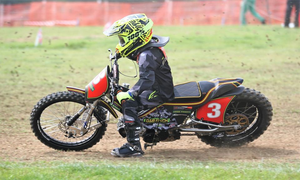 The Autos and Cadets, the youngest riders, put on some brilliant racing. Their day started off with a nasty-looking spill as four of them hurtled into the corner together on lap 3. It was local wins for Jacob Penfold and Leo Sturgeon. Both riders compete in several disciplines of motorsport but are from Grasstrack families.