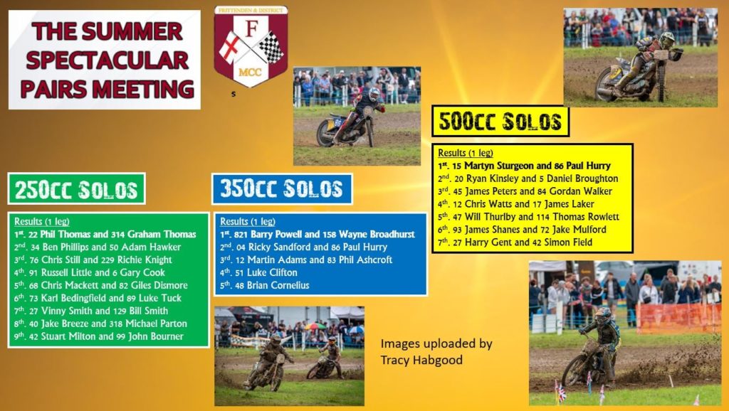 The Frittenden DMCC club hosted both the British Youth Grasstrack Track Championships and their Summer Specatular Grasstrack last weekend although the Spectacular was halted after one block of racing due to bad weather.