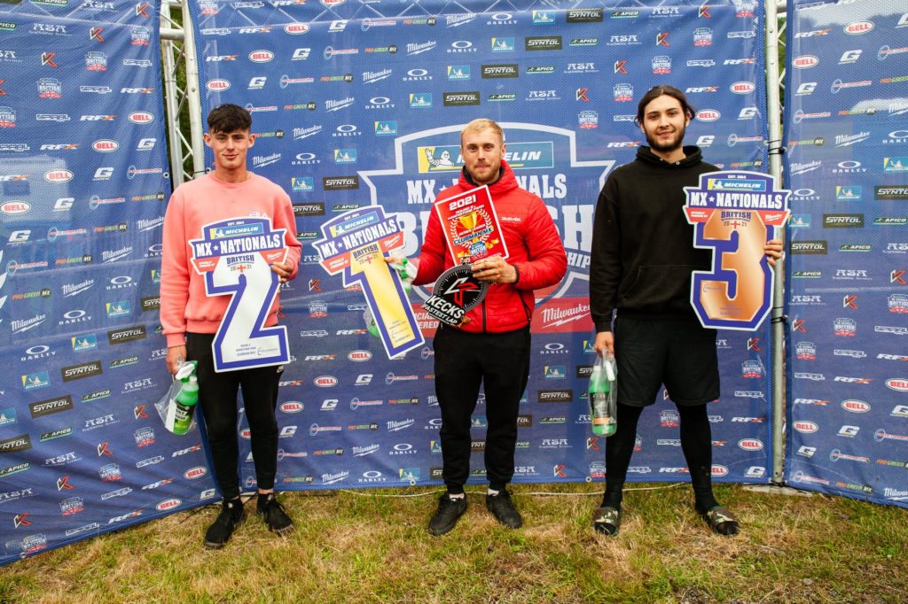 Round 1’s top two MXY2 250′ riders Alfie Jones and Jude Morris were absent on Saturday which paved the way for Ben Clark to up his game and notch up two wins. The aforementioned Jones and Morris shared the race spoils on Sunday, but when it came to the podium Clark would stand on the top step flanked by Luca Pegg in second and Lewis Glynn third.  At the head of the championship chase, Clark is in pole position with Jones seven points further back.