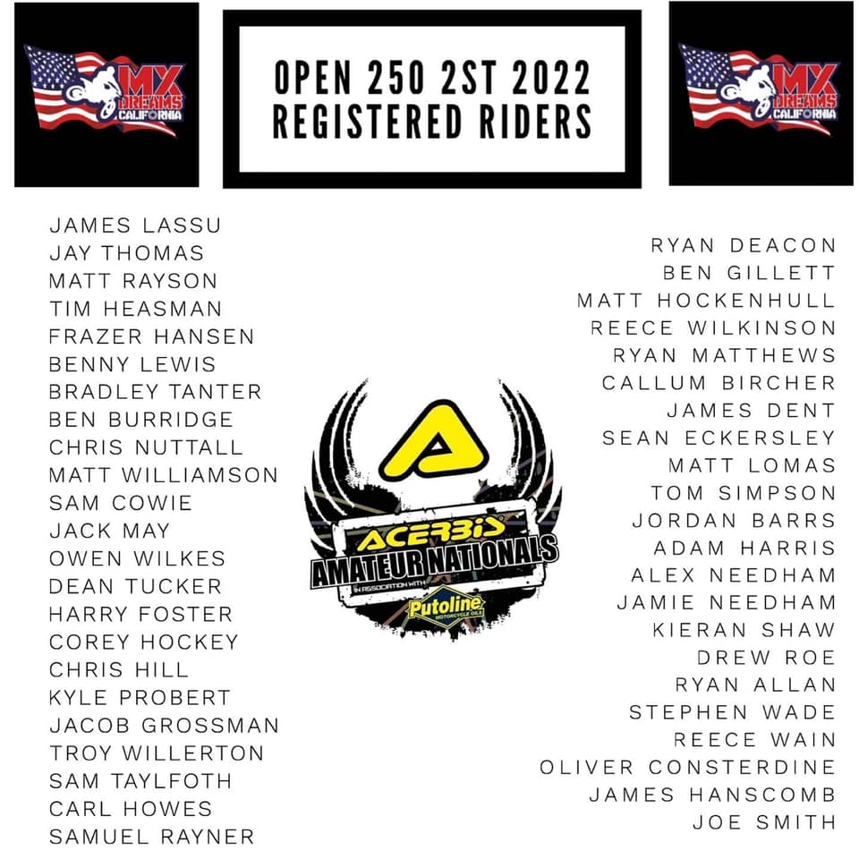 2022 Acerbis Amateur Nationals Entry Lists