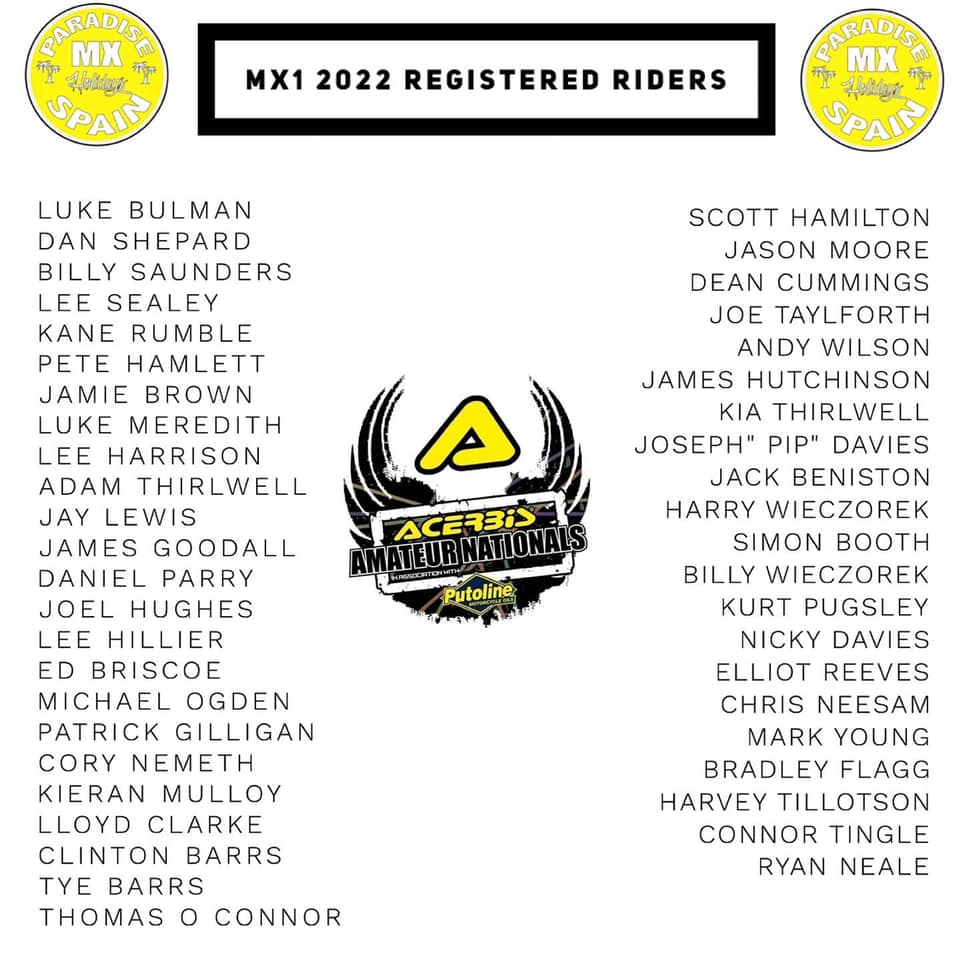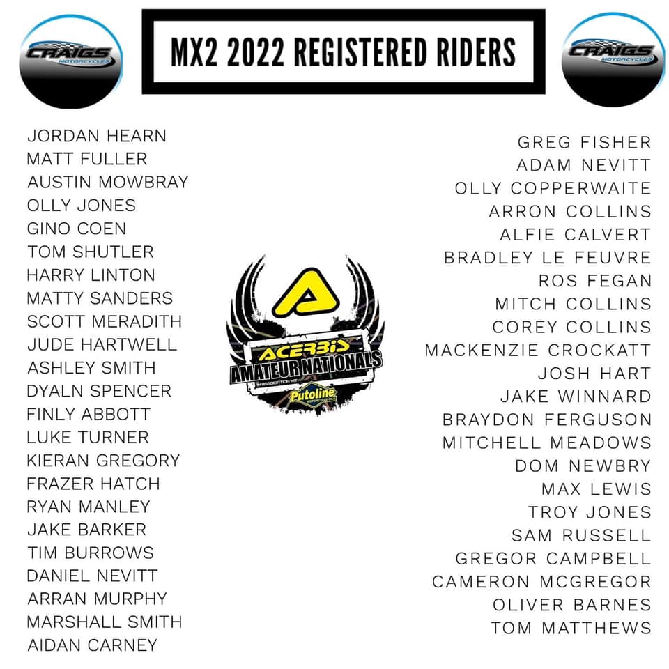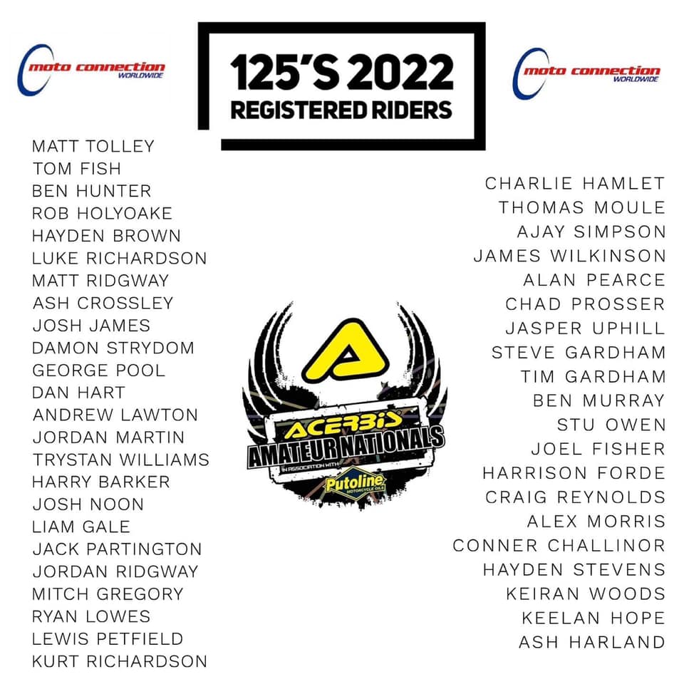 The entry lists for the 2022 Acerbis Amateur Nationals have been released and are below…