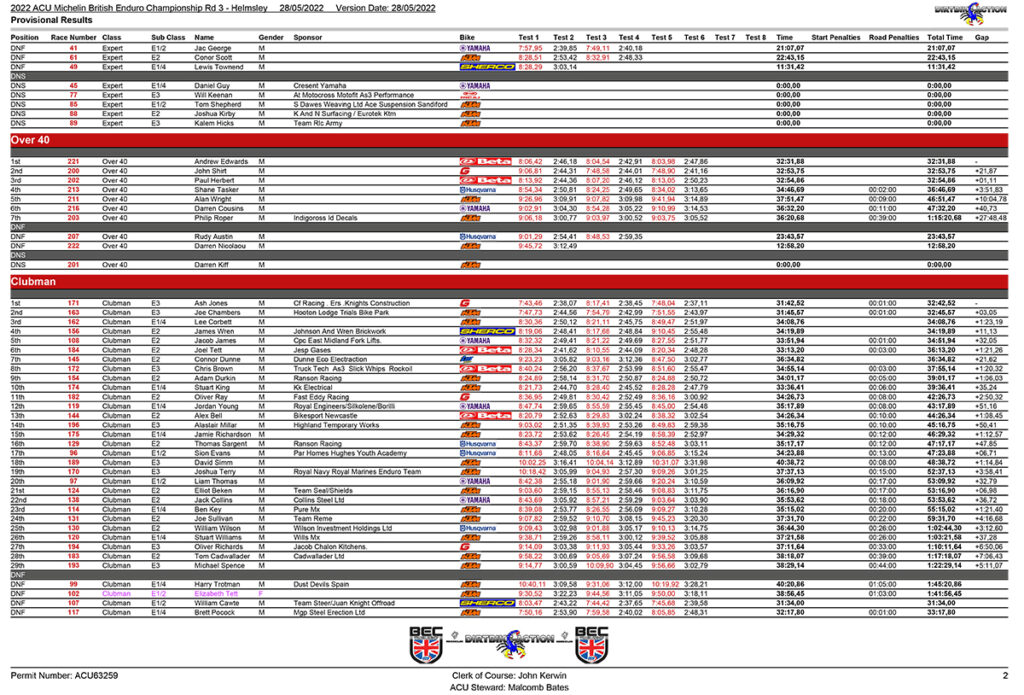 Dirtbike Action hosted the 3rd and 4th rounds of the 2022 British Enduro Championships as their Helmsley venue in Yorkshire.