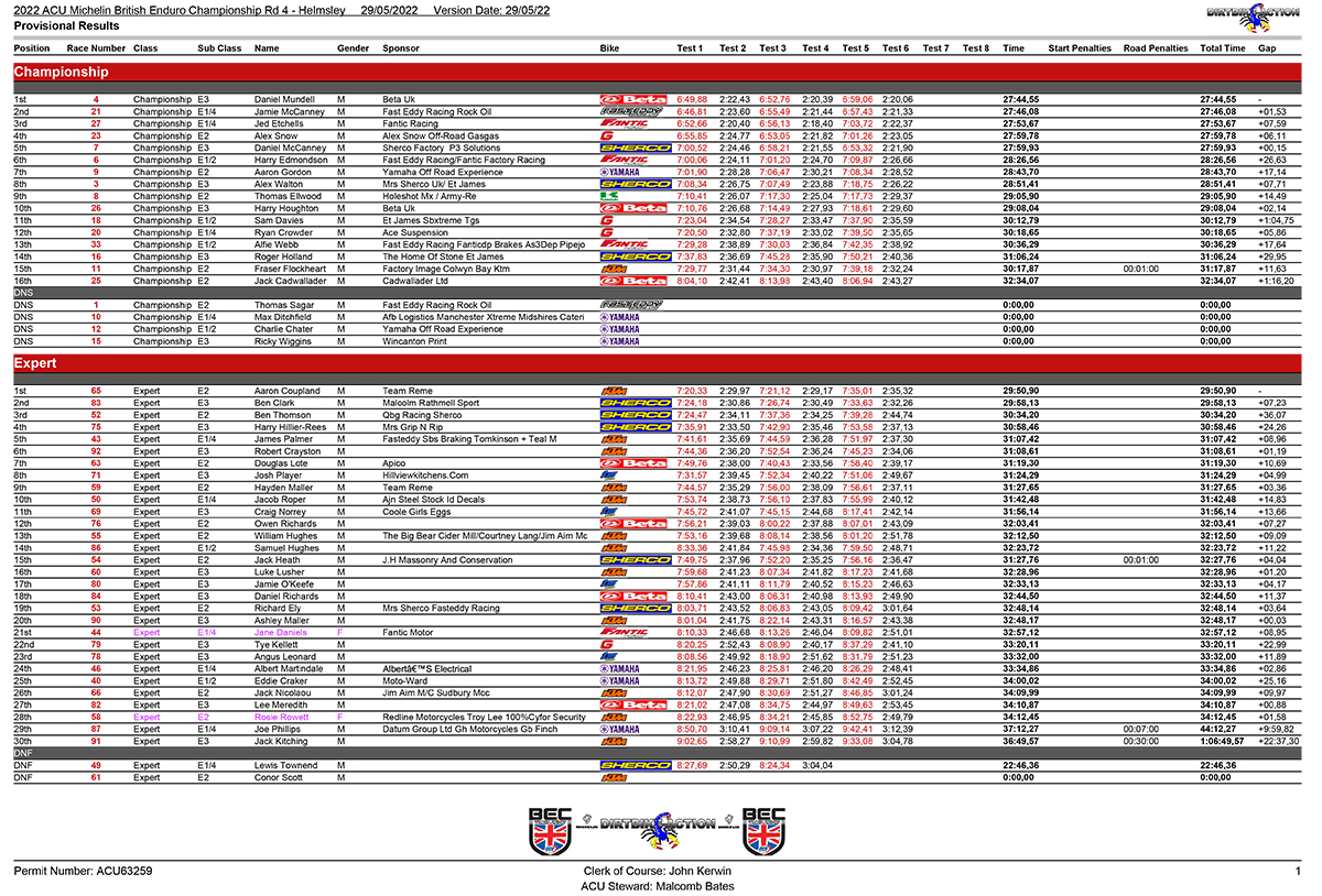 Dirtbike Action hosted the 3rd and 4th rounds of the 2022 British Enduro Championships as their Helmsley venue in Yorkshire.