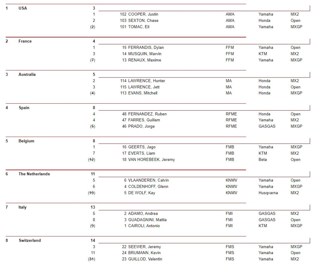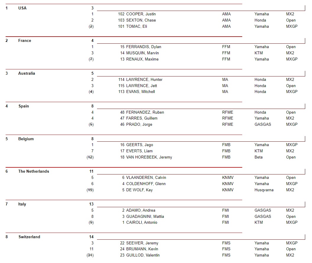 Catch the Full Set of Results from today’s Qualifying day at the 2022 Motocross of Nations at Red Bud.