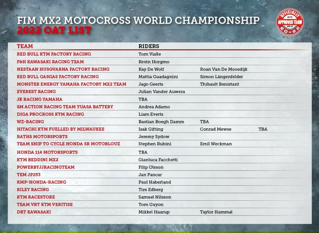 The 2022 Provisional OAT MXGP & MX2 Lists can be viewed in its entirety below: