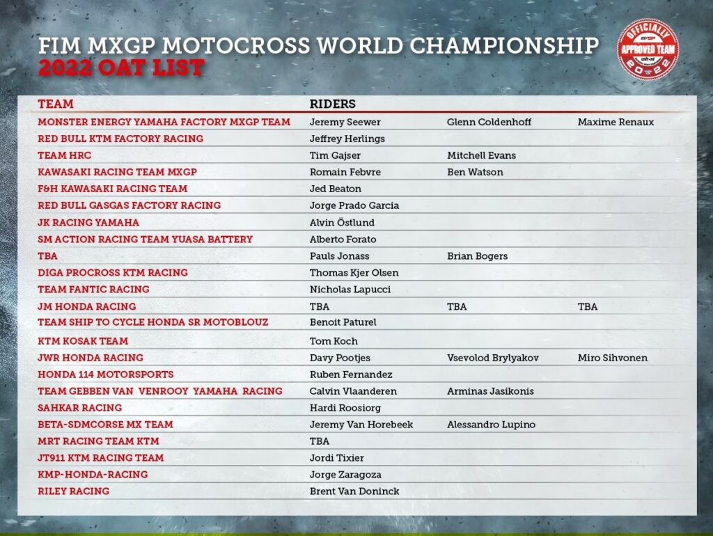 Infront Moto Racing is pleased to share the provisional OAT (Officially Approved Teams) list for the 2022 FIM Motocross World Championship!