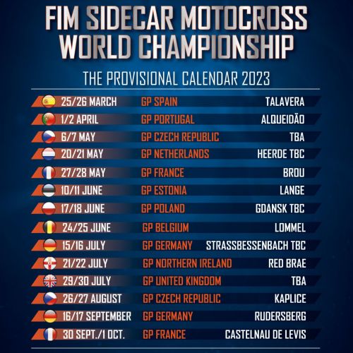 The provisional calendar for the 2023 World Sidecarcross Championship has been released, with the UK set to host two rounds; one being in England and another in Northern Ireland.