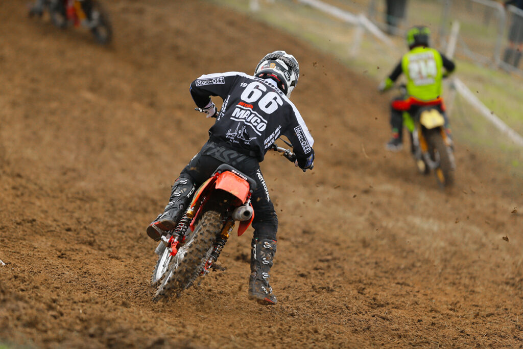 There were a lot of classes to get through in each block, so it’s difficult to mention every race in detail but first to the line were the Four Stroke riders. The man to beat was Scott Faulkner who strolled to four wins over the weekend to take the overall, with Matt Thomas just pipping Jason Fountain for second.