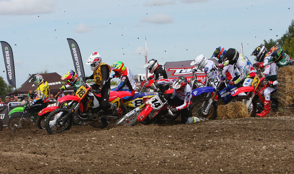 Ryan Voase was in stunning form in the Super Evo class, having won all three races going into the final moto. Voase though would go down on the first bend but came back to finish second just behind race winner Joakim Karlsson at the death. With a 1-1-1-2 scorecard Voase would stand on the top step of the podium flanked by Karlsson and Tom Van Loon who was third.