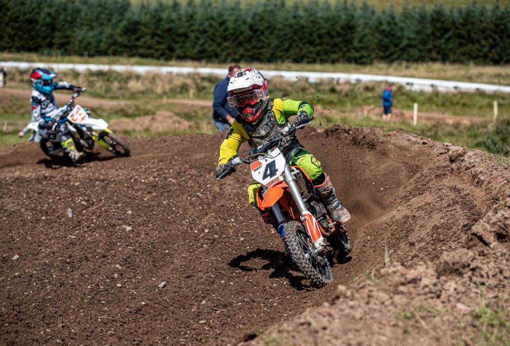 The main event had everyone watching in awe as some of the quickest riders in the UK descended upon Duns. Several of the riders benefited from riding the previous day in the Adult support but John Adamson would have his work cut out to maintain his 100% record of race wins. With some very tasty prize money on offer and the acclaim of their peers, the riders prepped their gates for the first race and what a race it was. Martin Barr was first out the gate, but Ryan Maclean looked back to his best as he got a flying start, but it wasn’t long before John Adamson got the better of Maclean and gained the position to track down Barr. As the last lap flag came out, it was the trigger for Adamson to push on and take the lead. He held Barr off who had the better lap times for the race, but John was able to use his race craft and protect his lead winning by 3 seconds. Maclean came home a deserved third and the young gun George Simmutch showed his speed and consistency in this race by pushing for a solid fourth. Brad Todd came in fifth but there was more to come from him as he was followed in by the first of the MX2 riders Jay Hague. It was like a local Elgin race for Ben Edwards and Aaron McCarroll as they had their own tussle.