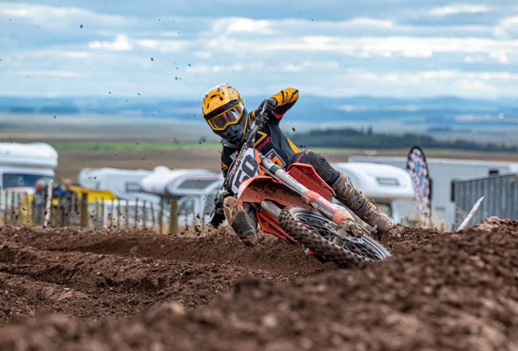 The riders had travelled from the four corners of the UK to be at Duns Motocross for the 2nd Round of the ScotMX Scottish Championship. The depth of field in the MX1-MX2 class was impressive, to say the least, and in the other races, there were a great number of well-known riders. Bang on time, practice was underway and qualifying was extremely close. There were seconds between the top 10 riders in most classes. There were three blocks of races planned with some support races in the kid’s classes.