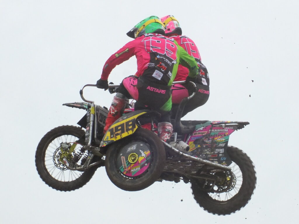 Going into Race two there was still one point separating Stuart Brown / Josh Chamberlain and Brett Wilkinson / Joe Millard at the top of the championship. It was Gary Moulds / Lewis Gray who again took the holeshot, and worked hard to take a second win, but it wasn’t to be. From behind Brett Wilkinson / Joe Millard battled through to second and then into the lead taking their first win of the day. Gary Moulds / Lewis Gray stayed close, until disaster struck just a few bends from the end of the race when the engine died but that didn’t stop them, they pushed the bike round the track and over the line to take an amazing fifth place. Behind, Stuart Brown / Josh Chamberlain were not having any more luck and also slowed with mechanical problems, Neil Campbell / Ross Graham saw an opportunity and blasted past, giving them a brilliant second place, Stuart Brown / Josh Chamberlain held third with Michael Hodges / Jack Wilkinson taking fourth.