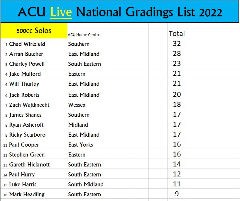 Grading lists compiled by Gareth Bemister – Feature Image courtesy of Mike Wood