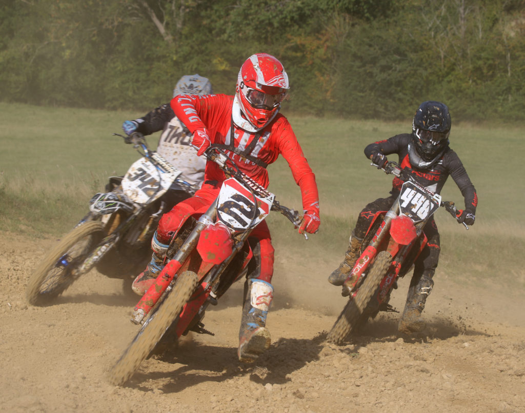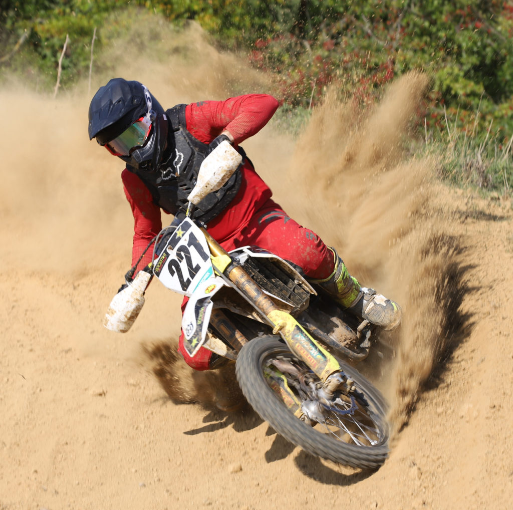 In the Premier O40 class Ryan Griffiths muscled his way to first overall with wins in races two and three. First race winner Darren Ismay took second overall after battling at the front each time. John Barnes took his new 250 to three consistent third places on his way to third overall. Fraser Law won each time out in the Elite O50 class. Second place went to a different rider each time, Greg Cox came out second overall never dropping out of the top three. Second in race two, David Hamer took third place overall from Rupert Fairclough who got faster as the day went on.