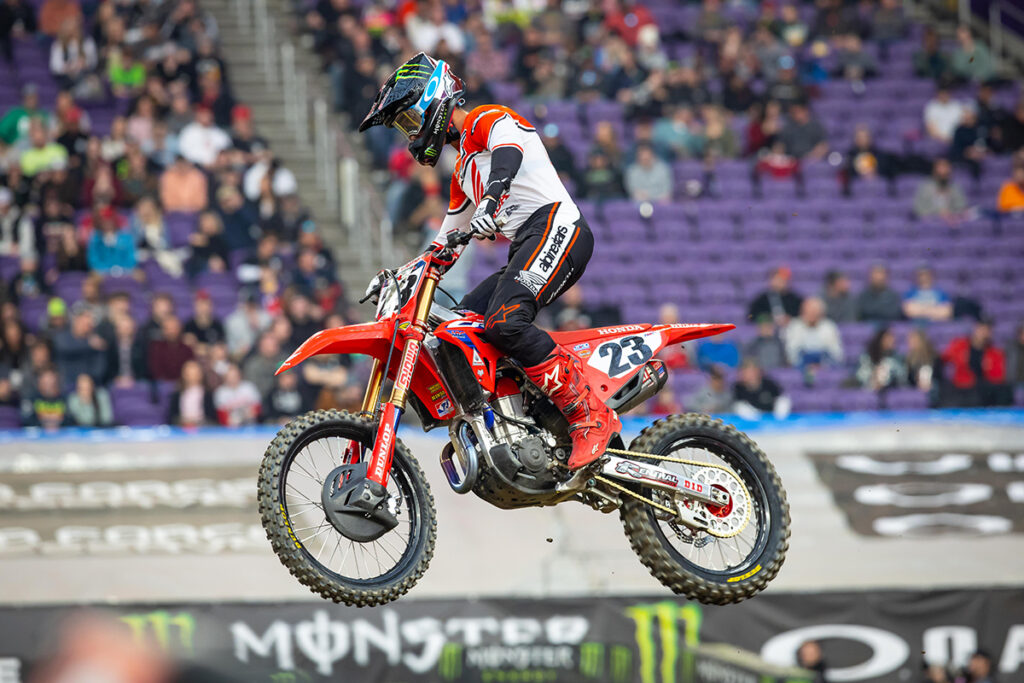 The top finish inside the domed stadium closed him to within three points of the championship points lead. Red Bull KTM’s Cooper Webb crossed the finish line in second, earning his second podium of the season with his Red Bull KTM teammate Marvin Musquin taking third place and Musquin’s first 2022 podium. In the opening round of the Eastern Regional 250SX Class series, Team Honda HRC’s Jett Lawrence took the win and the early points lead in what looks to be a very competitive division.