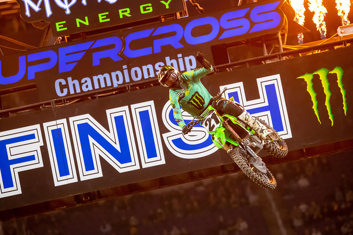Monster Energy Kawasaki’s Jason Anderson grabbed his third win of the season at Round 7 of the Monster Energy AMA Supercross Championship inside U.S. Bank Stadium in Minneapolis, Minn.