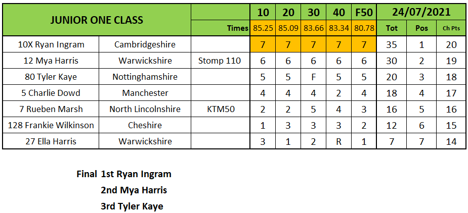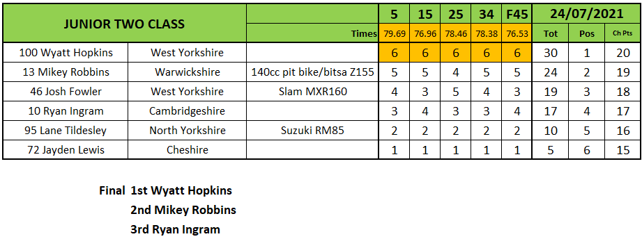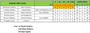 Over in Junior Two Wyatt Hopkins was back to his best and racked up a hefty collection of wins including the final ahead of Mikey Robbins and Ryan Ingram.