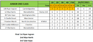 Ryan Ingram showed his talent once again in the Junior one class going through the card in the heats and final. Behind Ingram in the final was Mya Harris in second and Tyler Kaye third.