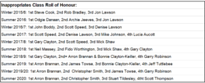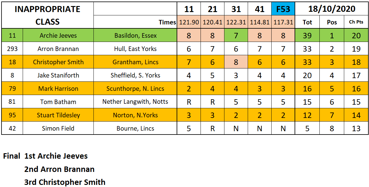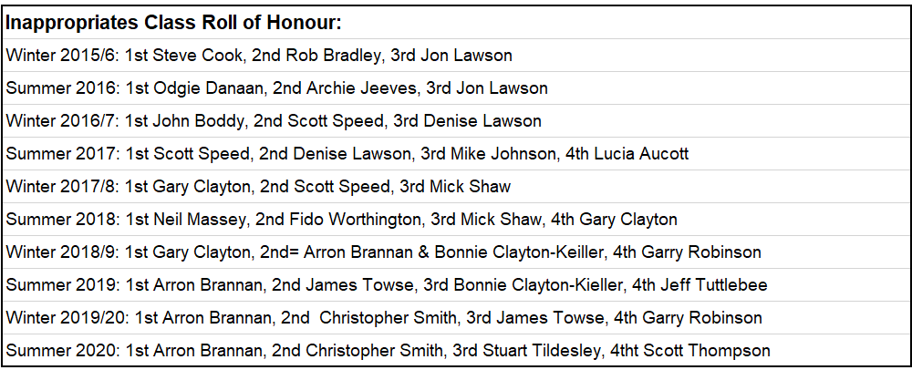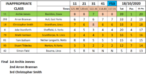 Archie Jeeves made his mark on the Inappropriate class by taking his maiden victory over Arran Brannon who would make it two titles in a row and Christopher Smith.