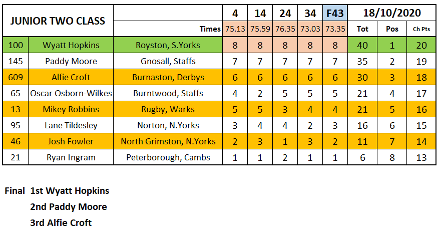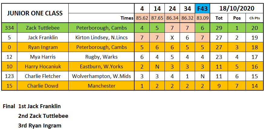 In the Junior One class Jack Franklin came good in the final, and doing so successfully defended his title over Zack Tuttlebee who scored the most points on the day, with Ryan Ingram third.