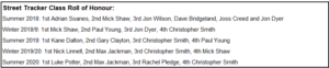 Luke Potter continued his Street Tracker supremacy by making it a full house of wins during the series to take the title. On the day Potter was flanked by Max Jackman and Rachael Pledge.