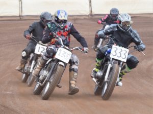 Aaron Tuttlebee continued his good run by winning the Vintage Flat Track class taking the title in the process. Odgie Danann was second and Adrian Soanes was third.