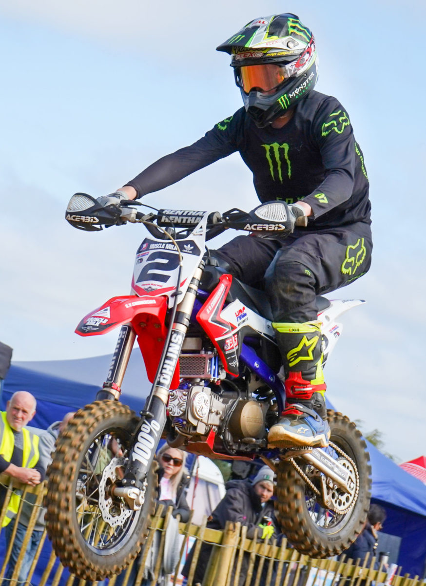 The Farm bike invasion continues, so much so there were two classes of them. In the A group Matt Bayliss reigned at each round earning him the first-ever Farm Bike British title. He had serious competition though from his young bro Chris who was second on Saturday and winning the first two moto’s on Sunday before a DNF halted his podium chances. Mike Ellis joined the ranks and was third on Saturday and second on Sunday with Charlie Beamish joining him on the podium on Sunday in third.