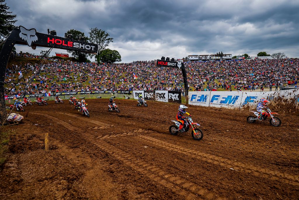 Shortly after the gate dropped for race one, a battle at the front quickly emerged between home favourite Noé Methais and battling Brits Cameron Berry and Austin Edwards. Leading the way for three laps, Methais would ultimately finish third in the race as Berry and Edwards advanced on the final lap with Cameron going on to claim victory from Austin. Last weekend’s overall winner, France’s Timoteï Cez, would place 19th aboard his KTM.