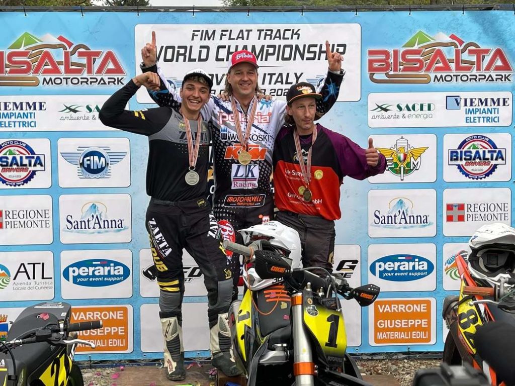 Finland’s Lasse Kurvinen ensured a fitting end to his FIM Flat Track World Championship career as he raced to a second consecutive title before confirming his retirement from the series at 43 years of age. Kurvinen, who needed only a podium from the season finale to secure the 2021 crown after victories in the German and Hungarian Rounds to start the year, claimed second at the Boves TT, located in the Bisalta Motor Park in North-West Italy.