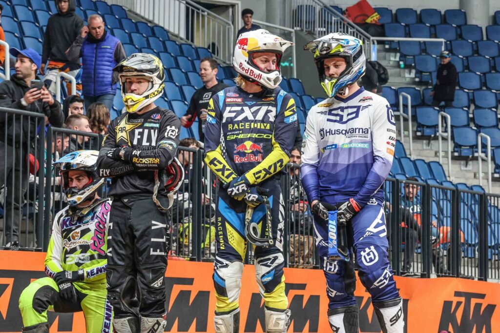 The organisers of the third round of the season followed everything to the letter, and were ready and waiting to provide riders and fans with the best experience. The evening began, as usual, with the Akrapovic SuperPole. After setting the fastest lap in timed practice Taddy BLAZUSIAK (POL-GasGas) seemed to be on top form, but unfortunately luck was not on his side and his GasGas came to a standstill as the engine stalled. Taddy therefore lost 10 seconds in SuperPole as the clock kept ticking. He was forced to start from 7th place in Race 1 and 3. The best time was set by none other than championship leader Billy BOLT, who managed to go under the 34 second mark (0’33.609). Behind him, his team-mate Colton HAAKER (USA-Husqvarna) also did well on the tight and tricky track, taking 2nd spot on the grid. Cody WEBB’s technique worked wonders, and he set off from 3rd with his Sherco, just ahead of Jonny WALKER (GBR-Beta), 4th in SuperPole.