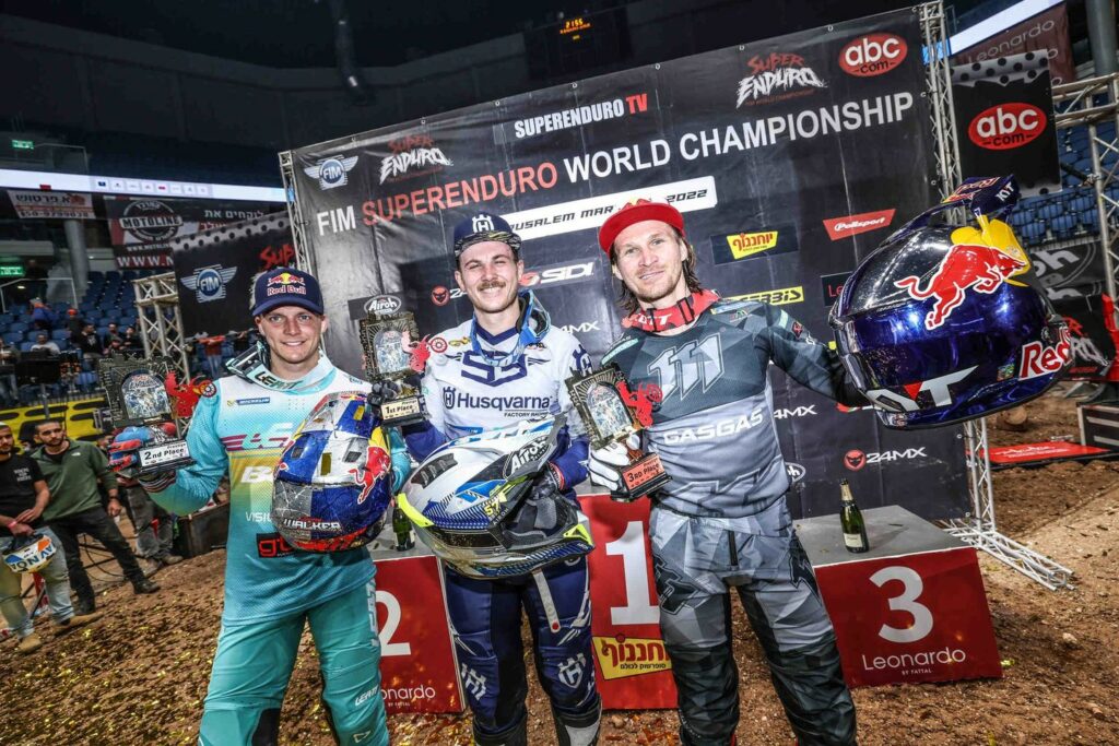 When it came to the three races of the evening, BOLT did not concede a single place to his opponents. He collected three wins, displaying confident domination. The Brit admitted that he wasn’t completely comfortable on a track as narrow and technical as in Jerusalem. However, he proved once again that he is adaptable and can be quick and precise in any arena. The tight track left no recovery time and pushed the world’s best to the limit. Colton HAAKER got off to a great start in Race 1 by grabbing the holeshot, but the Californian was quickly overtaken by his Husqvarna colleague. BOLT flew into the lead and scarcely looked back. HAAKER then had to see off repeated attempts from an on-form Jonny WALKER, with the Beta rider passing him with ease as Colton stalled his bike. In fact, WALKER was to be BOLT’s strongest rival on the night. Still looking for his first crown, the Brit has shown great consistency this season. He finished 2nd in the first race, ahead of Cody WEBB who finally managed to conquer his 2022 demons, the American rider was convincing all evening and his performance is on the up, although too late to fight for the title.