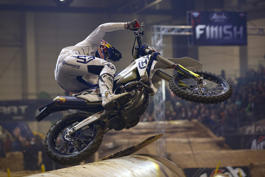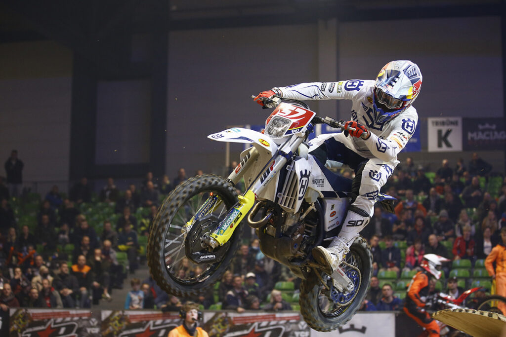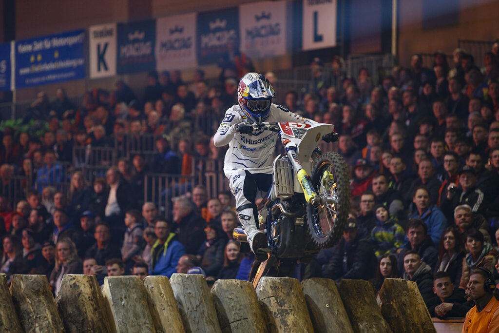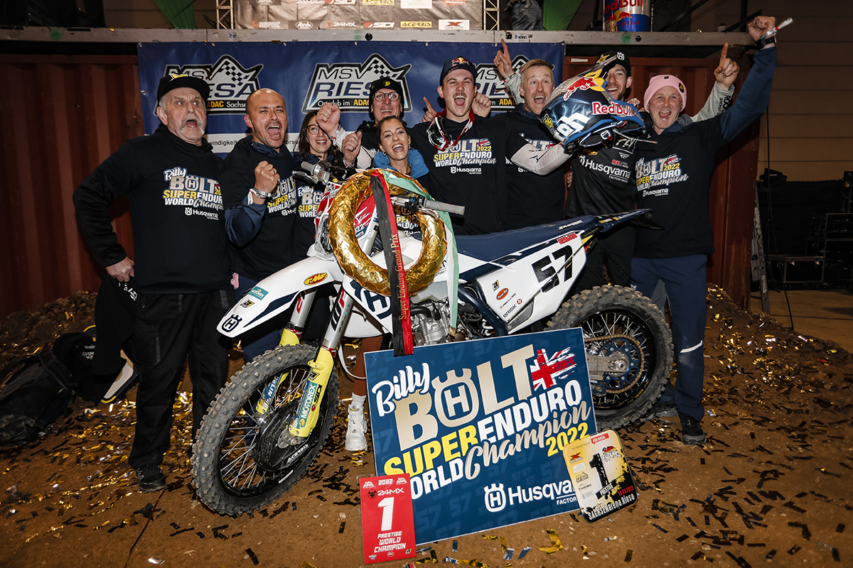 Delivering yet another showstopping performance, Husqvarna Factory Racing’s Billy Bolt has successfully defended his FIM SuperEnduro World Championship crown thanks to a victorious result at the penultimate round of the season in Germany. Winning all three races, plus SuperPole qualification, he simply dominated the proceedings from start to finish. Rising to the fore in Riesa, teammate Colton Haaker made it a Husqvarna 1-2 on the night’s overall podium. Claiming three seconds place finishes, Haaker also moves to second overall in the championship chase.