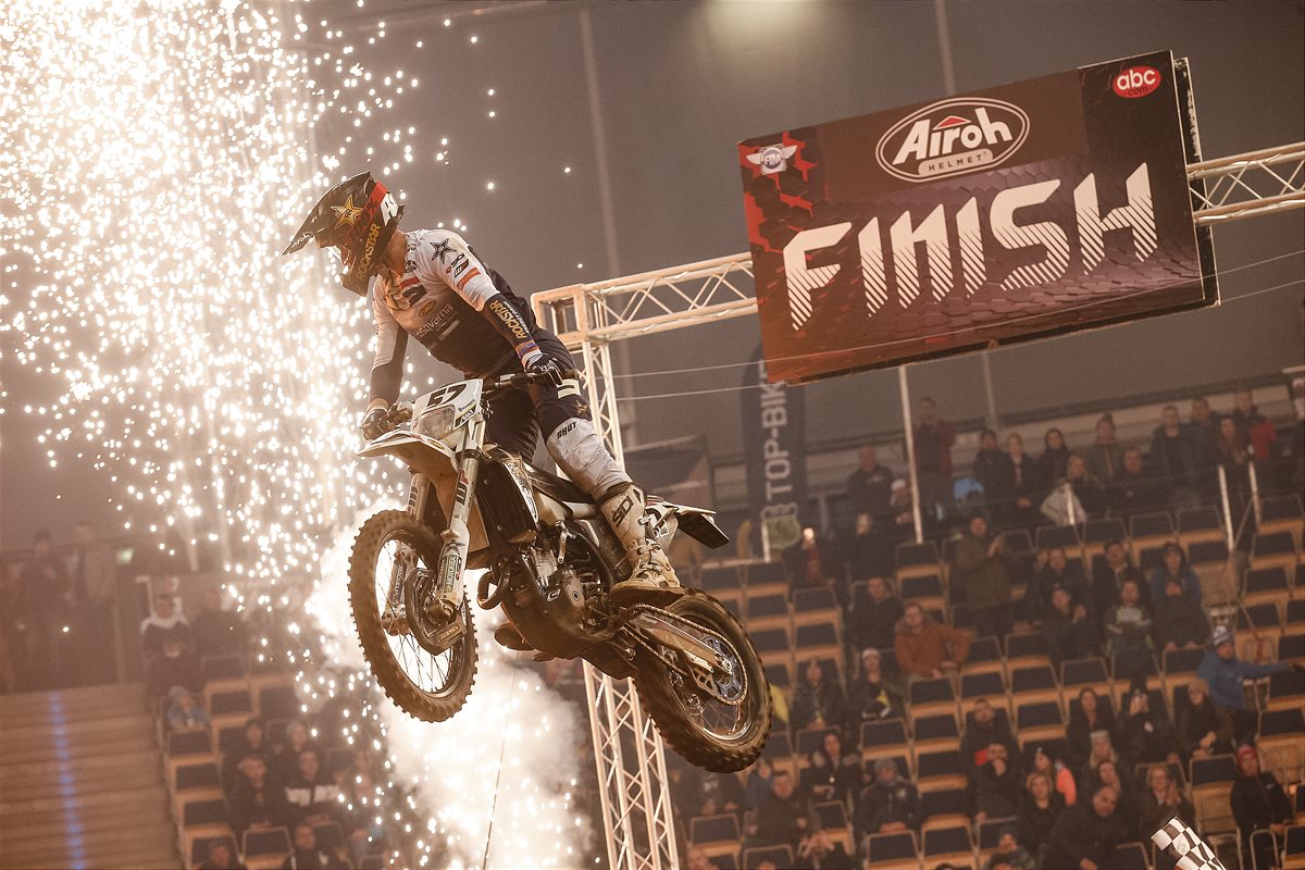Rockstar Energy Husqvarna Factory Racing’s Billy Bolt came out swinging at the long-awaited FIM SuperEnduro World Championship opener in Lodz, Poland, earning a deserved overall win and a healthy early championship lead. Quickly reminding everyone why he is the defending world champion indoors, Bolt topped the night’s SuperPole hot lap before going on to win all three of the Prestige class finals and secure overall victory. Returning to the SuperEnduro series for the first time since winning the title in 2019, AMA EnduroCross champion Colton Haaker enjoyed a solid night, taking a close third overall.