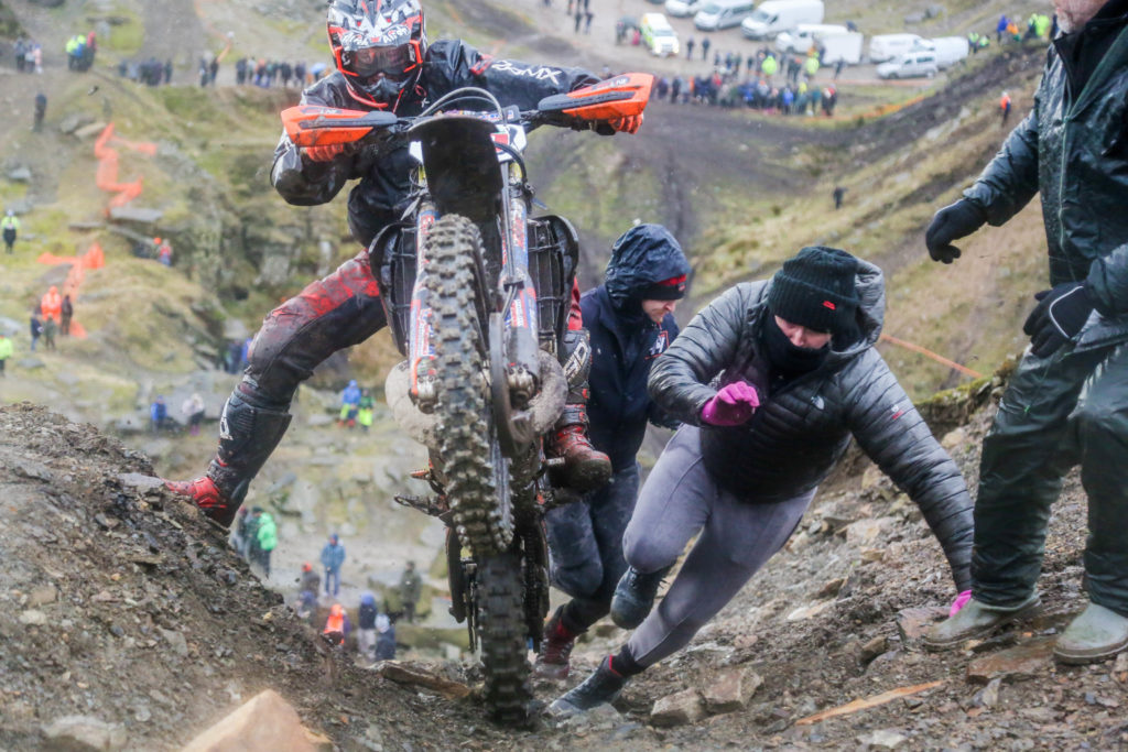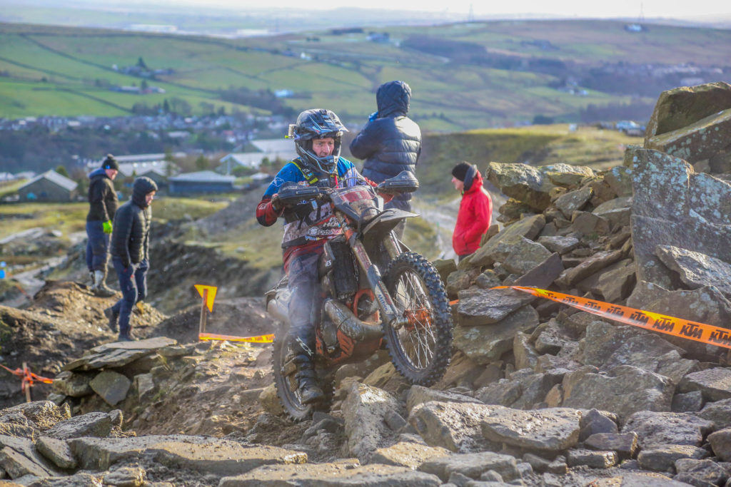 The two Big guns of British Extreme Enduro, Billy Bolt and Jonny Walker went head to head in an epic battle of supremacy at the second round of the 2020 British Extreme Enduro Championships at Cowm Quarry today with Storm Dennis showing his hand too and making a full-on test of stamina and nerve.