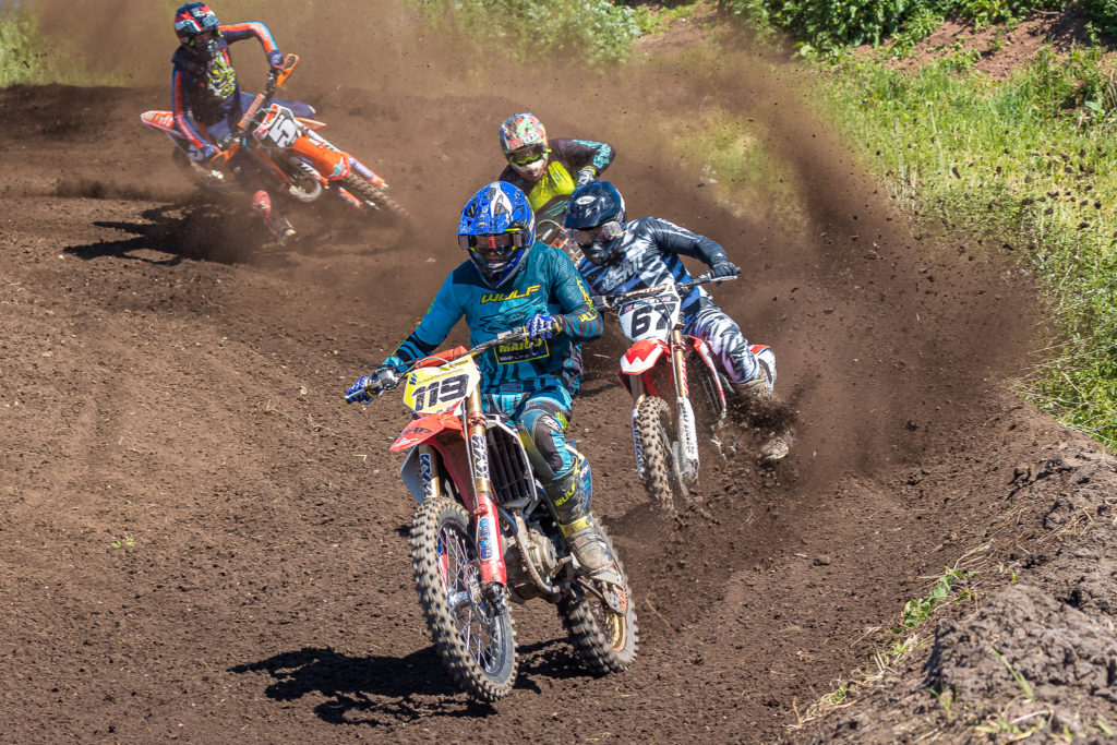 Brad O’Leary ended the day leading the Wulfsport Experts class, despite having to come from dead last in race one, which was won by Jimmy Margetson. But it was all happening in race two as a massive ten bike pile up at the end of the start straight, took out two leading contenders with both Margetsons involved. Michael Smith had a great day and ended second on the podium with three consistent finishes.