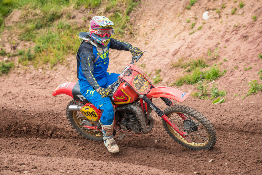 Willie Burgess continued where he had left off at Bevercotes, with three faultless victories in the Moto X Concepts Over 50’s twinshock class on the Gary Murphy Maico. Kevin Reed tried all he could to close the gap in each race but had to be content with three seconds. Mark Warttig had his best result in third, from Jim Shand and Pete Williamson.