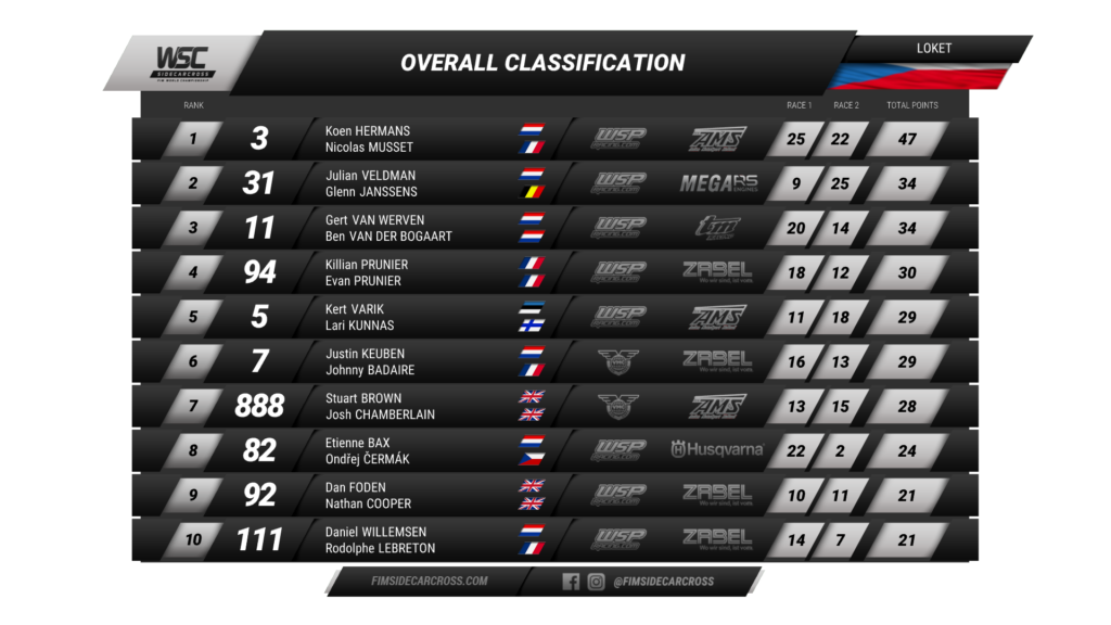 Result – 1/ Hermans/Musset, 2/ Bax/Cermak, 3/ Van Werven/Van Den Bogaart, 4/ Prunier/Prunier, 5/ Keuben/Badaire, 6/ Heinzer/Betschart, 7/ Willemsen/Lebreton, 8/ Brown/Chamberlain, 9/ Leferink/Beleckas, 10/ Varik/Kunnas.
