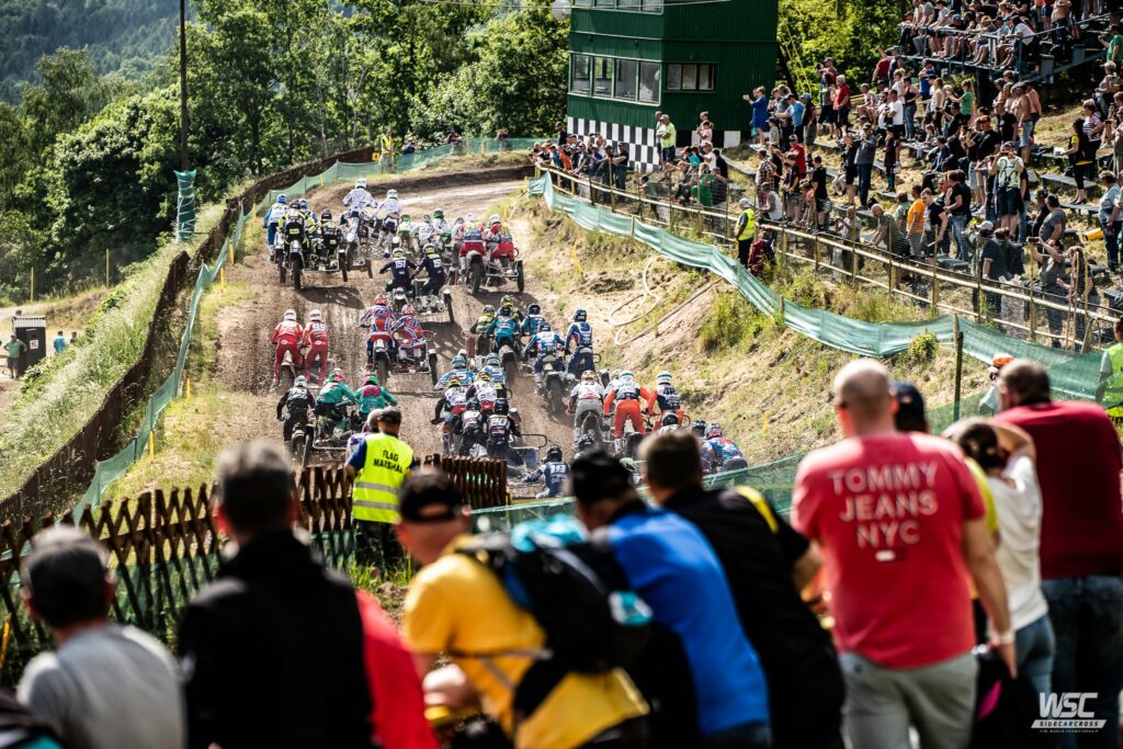 The spectacular Loket track, with its steep climbs and drops, its massive jumps and dauntingly tight hairpin turns was guaranteed to bring out the best from the teams on race-day. We had seen throughout qualifying what they were capable of, and the bar was raised even higher when points were at stake. One or two encountered problems, with Jake Brown/Paul Horton having a massive crash in timed practice resulting in a dislocated shoulder.