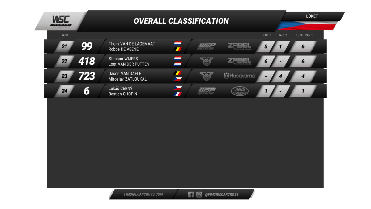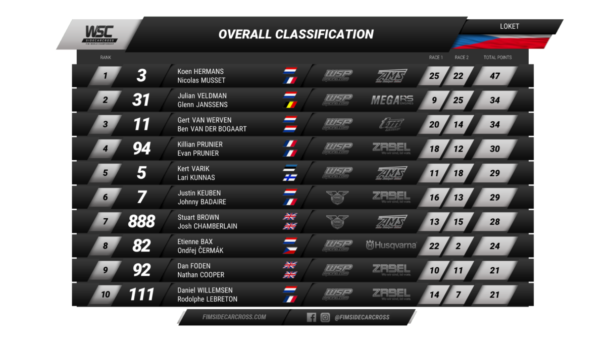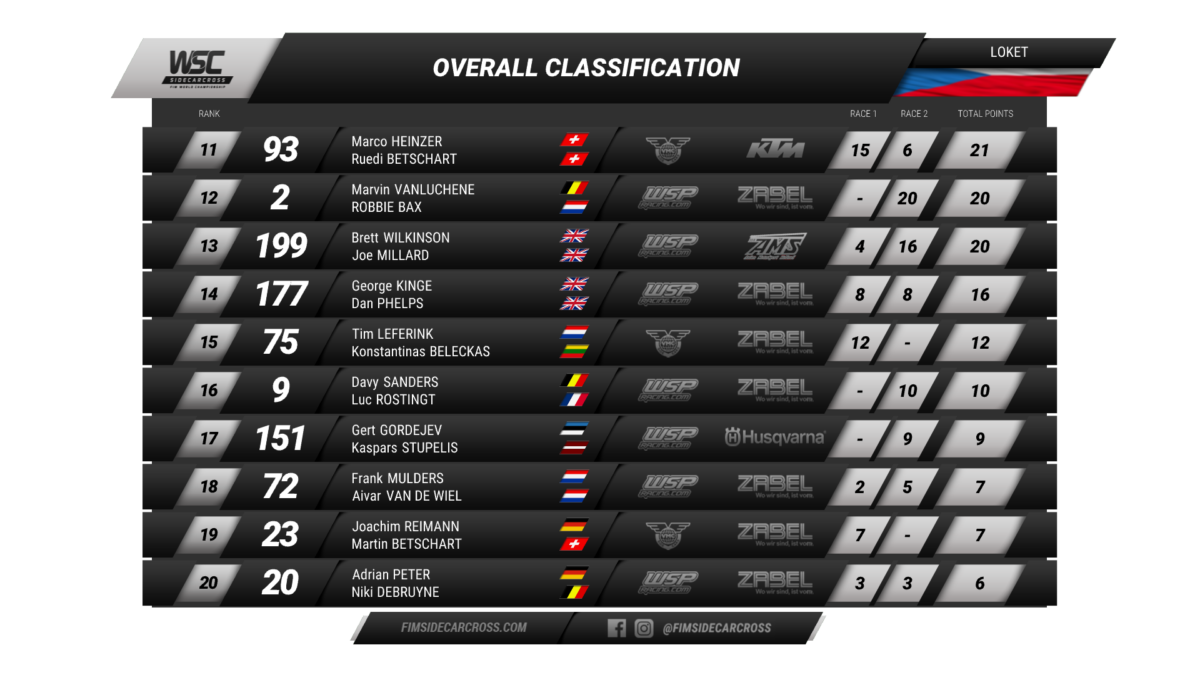 Result – 1/ Hermans/Musset, 2/ Bax/Cermak, 3/ Van Werven/Van Den Bogaart, 4/ Prunier/Prunier, 5/ Keuben/Badaire, 6/ Heinzer/Betschart, 7/ Willemsen/Lebreton, 8/ Brown/Chamberlain, 9/ Leferink/Beleckas, 10/ Varik/Kunnas.