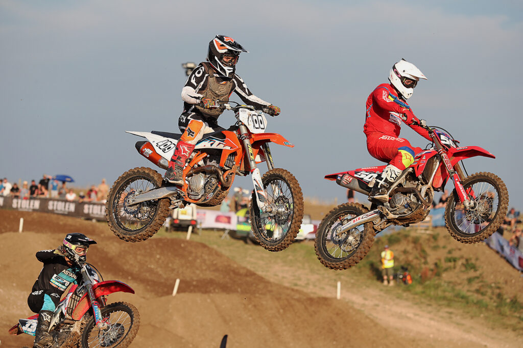 Thrills, spills, drama and great racing, the Airborne Gunner part 2 had it all and so much more! And, proving that if you promote it well, the crowds will support you, there was also plenty of spectators in attendance to witness the exciting action, all fought out on a track superbly constructed and prepared by the Cusses Gorse MX main man Mr Justin Barclay. The evening’s entertainment provided racing for Clubman, Expert and Pro classes and was completed by a Pro Superpole fast lap and ‘Fox Cool Whip’ competition.