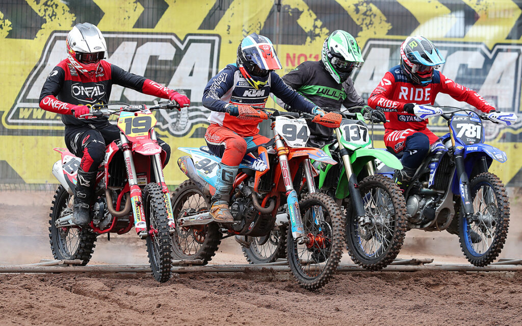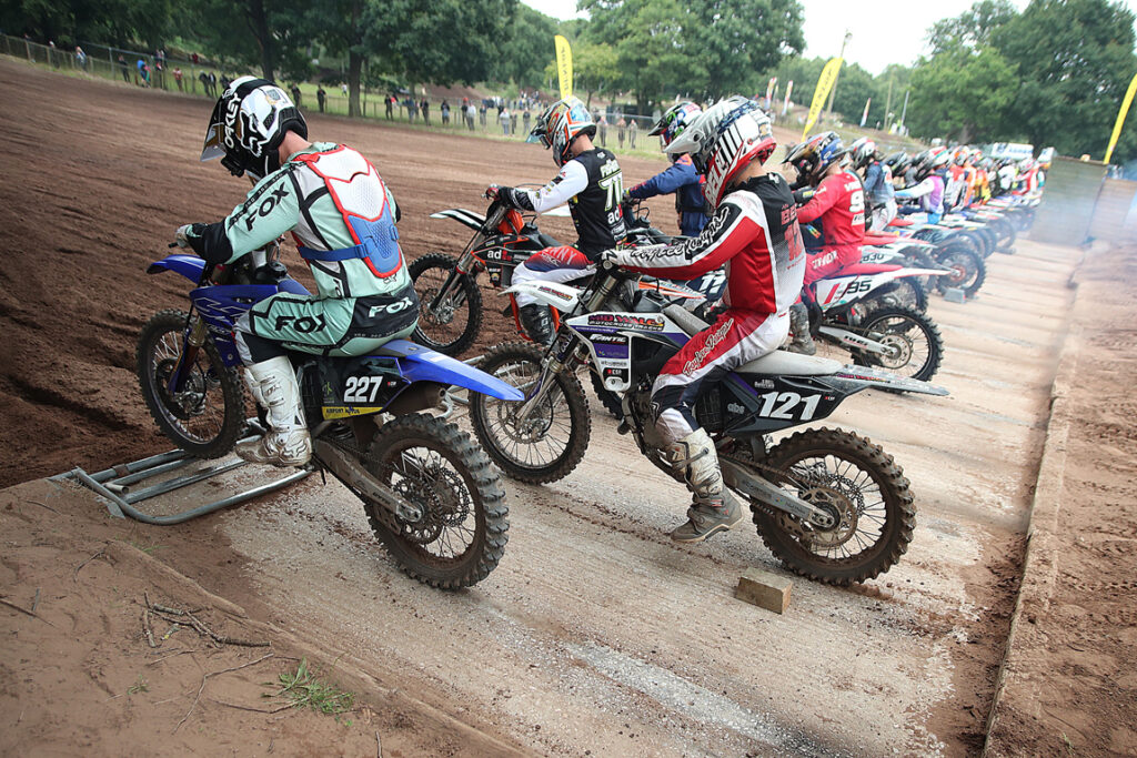 In the last Vets tussle, Davies led all the way despite intense pressure early on from Mercer. The Hawkstone results now mean that it’s very tight at the top of the Championship standings with Davies the new leader just a single point clear of Holmes and Mercer only a further 8 points in arrears. Mercer though does lead the Vets Over 50’s class with Smith and Staples, despite a heavy last moto tumble next up.