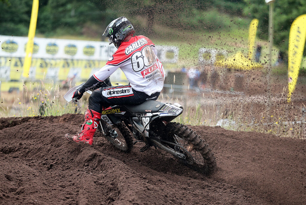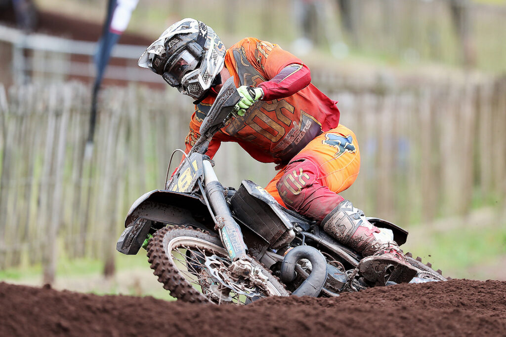 In what was a stacked MX2 line-up, the last moto of the day then proved to be arguably the most dramatic as both Alba in 8th and Bradshaw 14th did not make the best of starts and had a bit of work to do! Meanwhile at the front, Carless was comfortably in control and on his way to bagging his compulsory victory by leading all the way as Williams initially held 2nd with Preston in 3rd. But as the contest unravelled and in a serious 2T raid, by lap four Alba was already up to 4th with Bradshaw right on his tail before the pattern changed on the final circuit. Passing Preston, Alba then with two corners remaining dived hard under Williams, the Apex GasGas UK youngster tasting the sand and dropping to a 5th place finish. So in that frantic conclusion it was Alba in 2nd, Preston 3rd and Bradshaw 4th, that last race result meaning that Bradshaw took the overall win. Joining him on the podium was Williams and Preston, enjoying his best result of the season so far. Although Carless did not make the box, he has slightly increased his lead at the top of the standings as Callum Baldwin continues to be the MX2 Cup pace-setter with Josh Peters, Adam Cook and Cory McShane challenging.