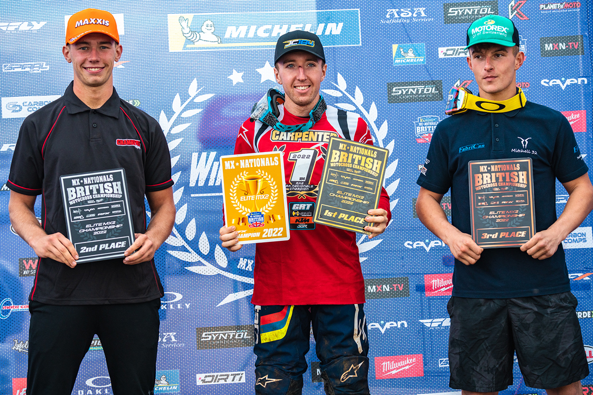 In Moto 2, Jamie managed to narrowly miss a first turn crash, resulting in coming out around 10th place. He worked his way through the field, with his eyes kept firmly on Grimshaw’s position. He rode smart, stuck to the game plan, and came home 6th place, which was good enough to claim the Pro MX2 title. A fantastic end to a great season for Jamie, as he and the team our first Pro Championship.