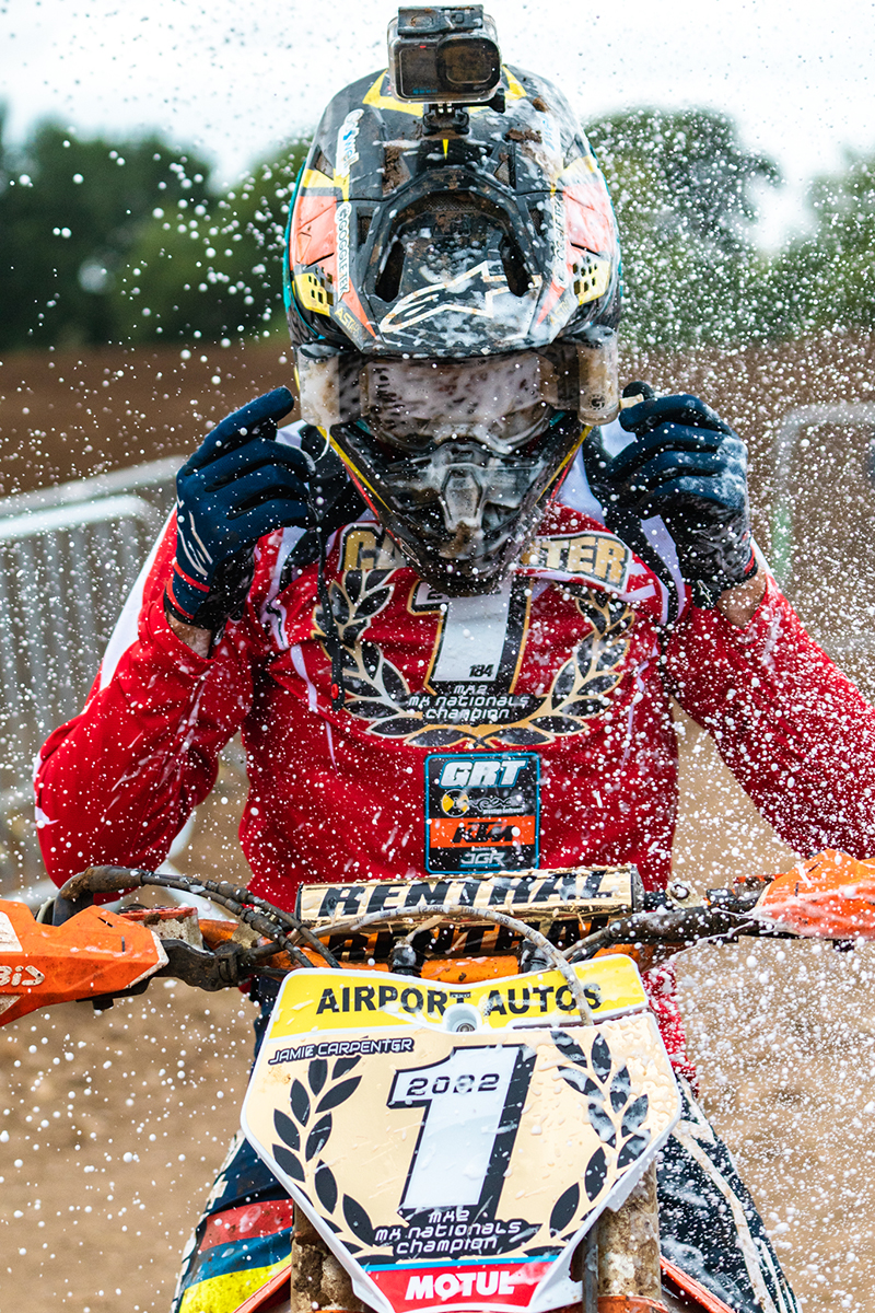 Pro MX2 Championship leader Jamie Carpenter had a 10-point lead going into the final round, and was determined not to let go of the red plate. He qualified well, putting himself in the top 5 and securing a good gate pick for the races.