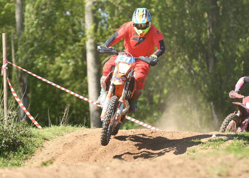 The course was reversed for the afternoon, and it certainly posed some questions for the riders with an equal split on the preferred session. With heavy rain the few days before Sunday’s event the going could have gone either way with mixed woodland, pasture and tone of the notorious bogs in the course, but a drying breeze provided a hard fast surface throwing up plenty of dust as the racing progressed. To score points both the morning & afternoon session had to be completed and there were some surprising withdrawals due to mechanical issues which would hamper chances of making up the points at this the third round of the Championship.