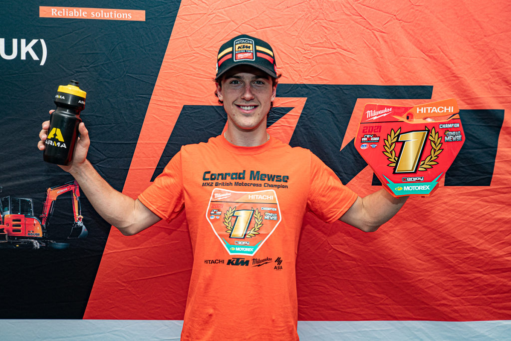 Conrad Mewse clinched the MX2 title in the 2021 ACU British Championship earlier today, as he dominated proceedings at the final round of the current campaign. Mewse was simply untouchable on home soil – he was more than a minute ahead of second place in both motos and claimed pole by more than four seconds. Mewse was just on another level aboard his Hitachi KTM fuelled by Milwaukee steed.