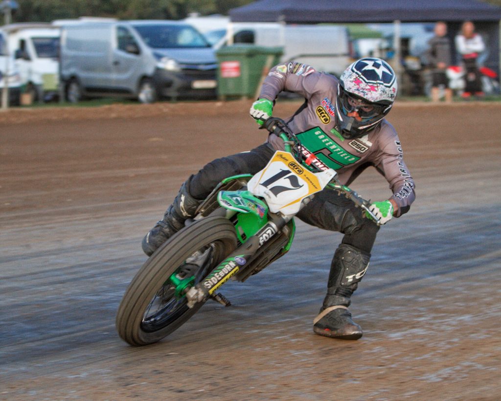 It was nice to have Tim Neave and Tom Neave back racing with the DTRA on the Greenfield Oval. They both grew up racing flat track in the UK but their main focus now is racing National Superstock 1000 in the British Superbike series. Even after long breaks from flat track when the twins return to the DTRA they put on an amazing show for racers and spectators.