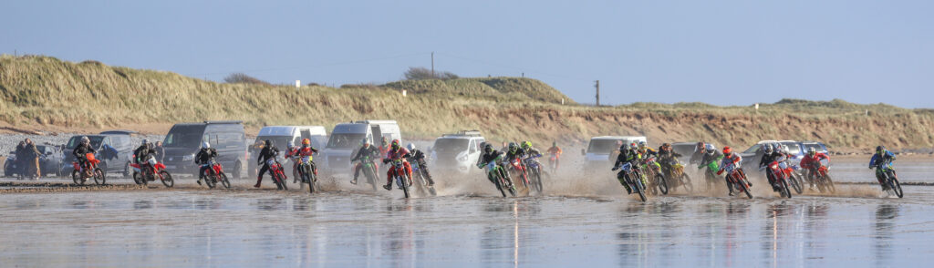 Pendine sands came alive to the roar of engines on Sunday morning with the annual ( DLMX ) Dredgers Laugharne Motocross Club’s beach race.