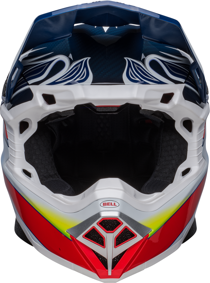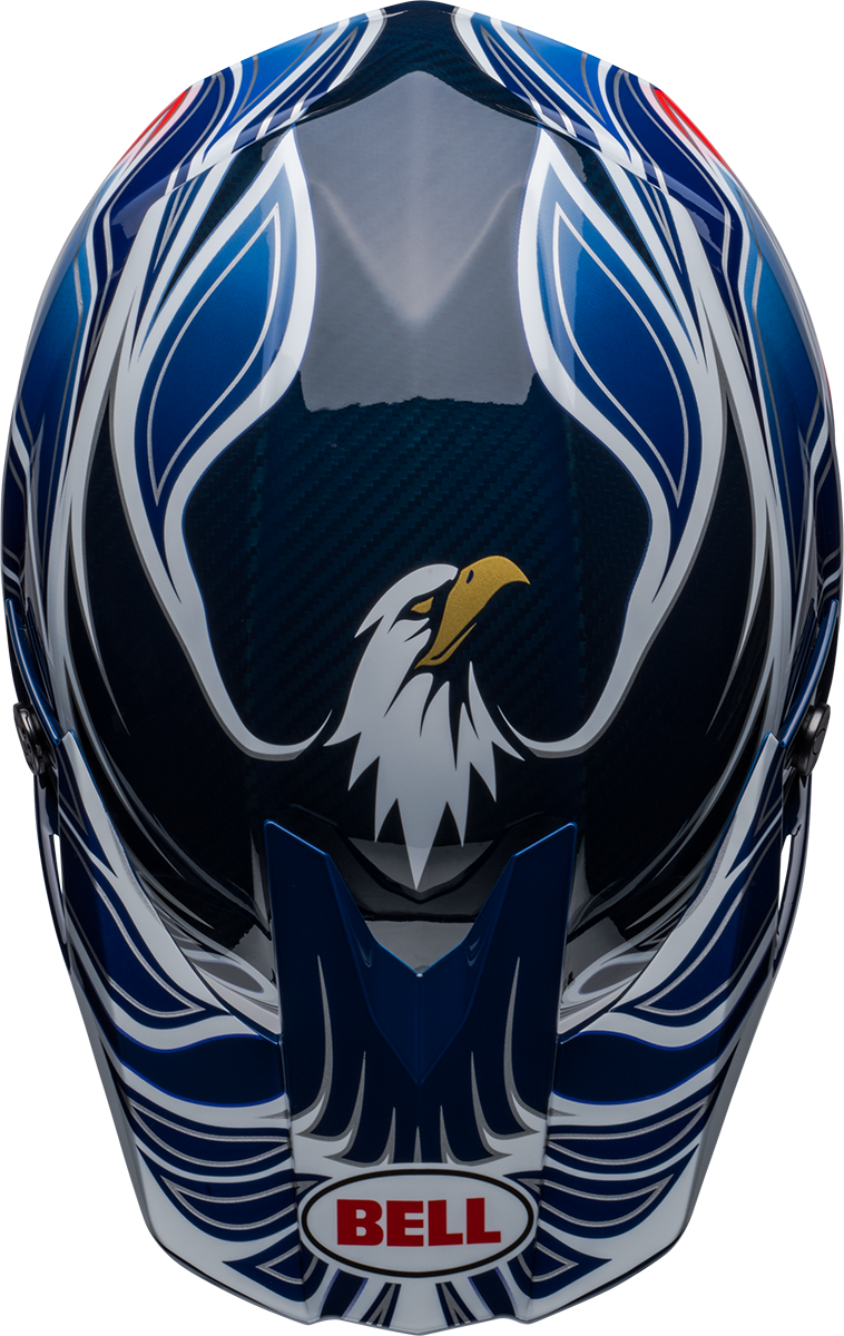 Bell is proud to introduce Eli Tomac’s all-new Moto-10 Eagle replica helmet, inspired by the graphics and colours of the 90s motocross era, when wild paint combinations and off-the-wall designs were the standard. This Moto-10 features Tomac’s signature eagle design element, which is a callback to the cycling and mountain biking race helmets of his father, John Tomac.