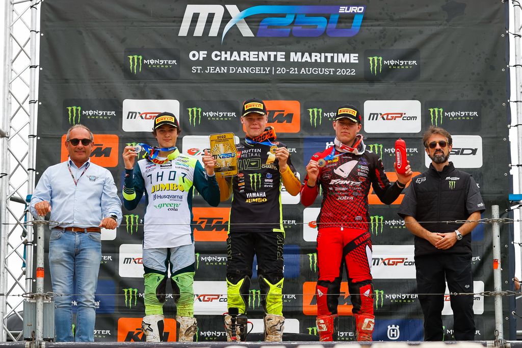 The round of Charente Maritime concluded the 2022 campaign of the EMX250 Championship that saw Hutten Metaal Yamaha Racing’s Rick Elzinga wrap up the title in the opening heat, while Jumbo BT Husqvarna Racing Team’s Lucas Coenen ended his season in the best way possible with a 1-1 scorecard and claimed his third overall win of the year as well as the silver medal in the standings!